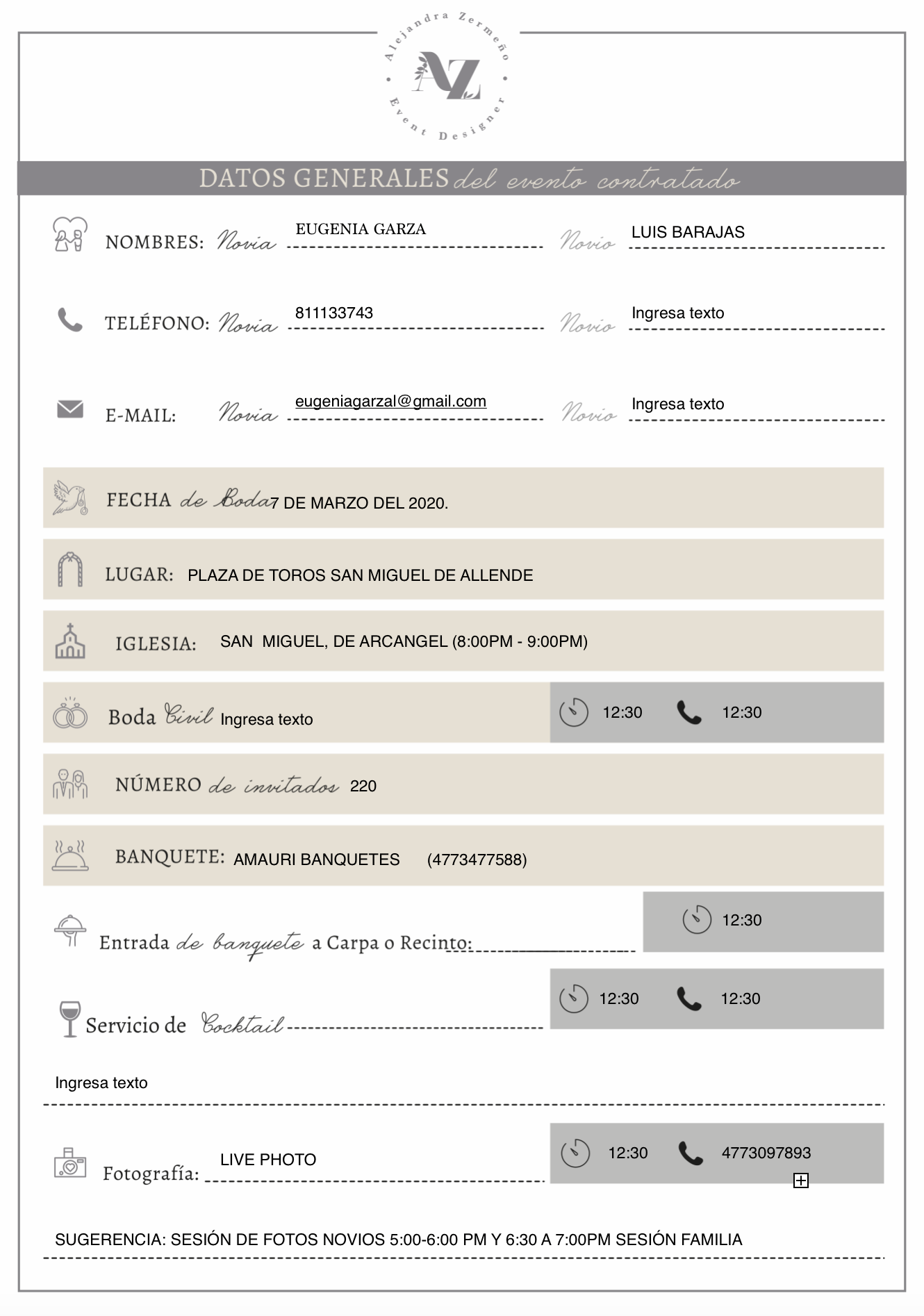 Faltan para tu boda:DaysHoursMinutesSeconds11 de octubre del 2020 Recepción La Hacienda, Cortázar Guanajuato 6:30 pm Civil Hacienda Belloli 7:00 pm Recepción La Hacienda, Cortázar Guanajuato 6:30 pm